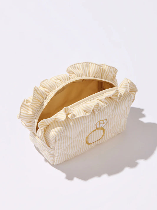 Shiraleah Beige Ruffle “Bride” Large Zip Pouch