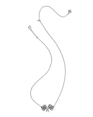 CHECKERED FLAG SHORT PENDANT NECKLACE SILVER WHITE MOTHER OF PEARL