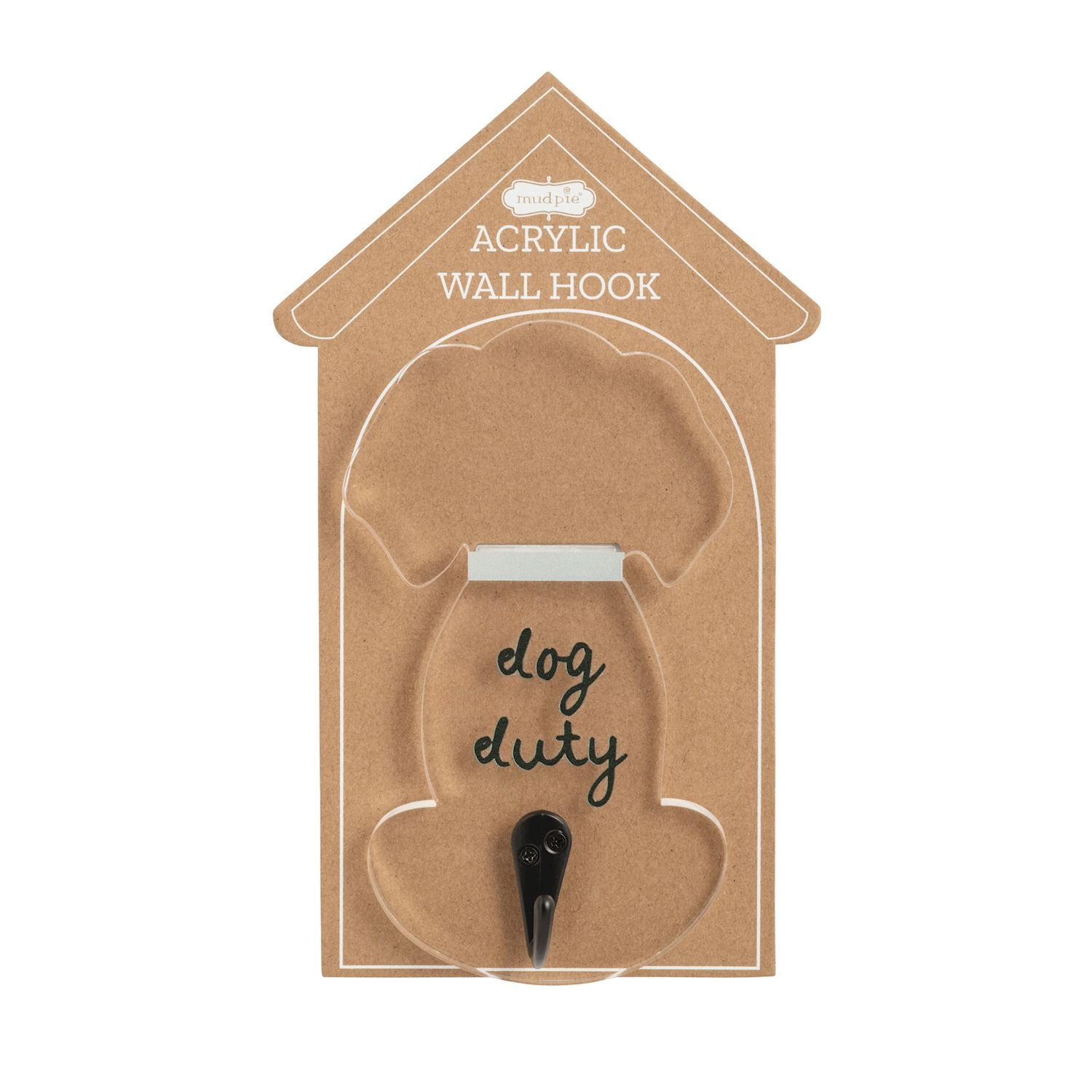Acrylic dog shaped wall plaque with metal hook. Sawtooth hardware.