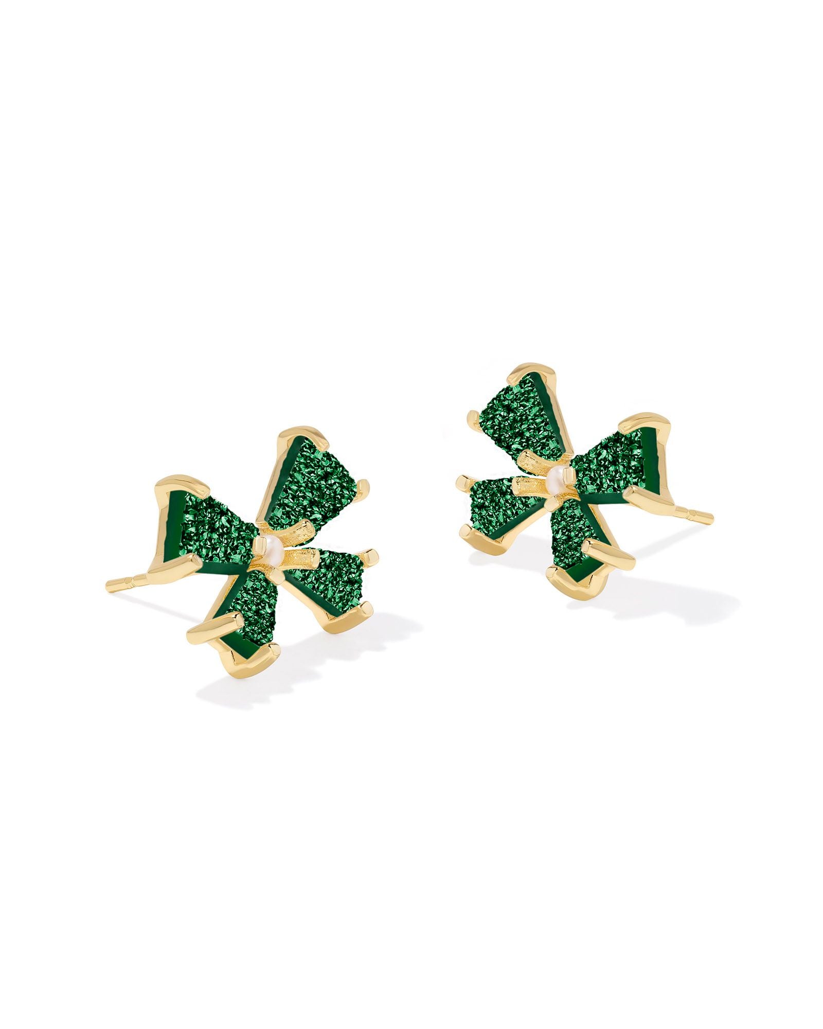 Sophisticated and oh-so-sweet, you’ll be styling the Blair Gold Bow Small Stud Earrings in Emerald Drusy all season long. A daintier iteration of our Blair Bow Stud Earrings, this sweet style elevates the bow shape with a contemporary, linear design and dazzling drusy stones.