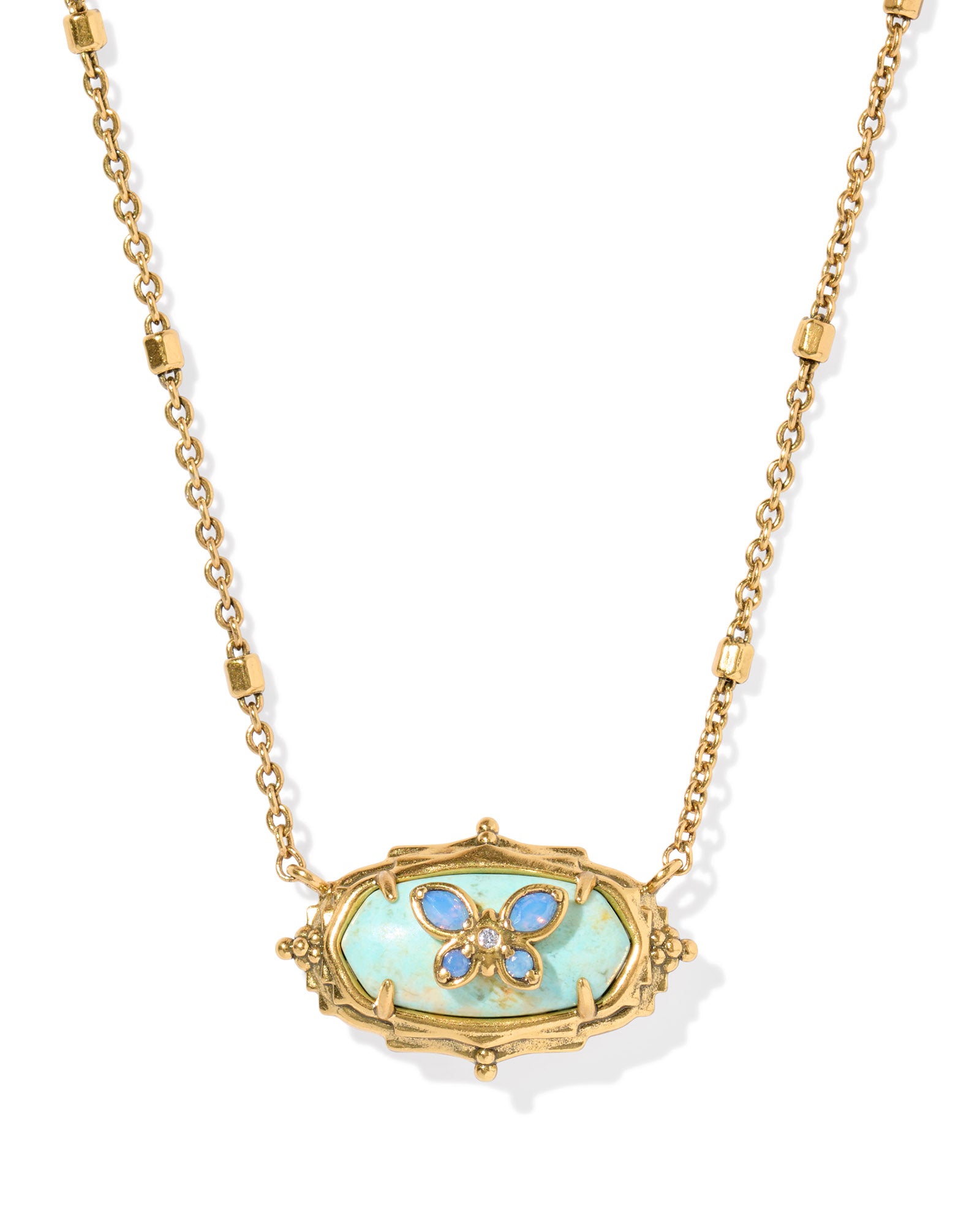 DOLLY PARTON ELISA BUTTERFLY SHORT PENDANT NECKLACE VINTAGE GOLD SEA GREEN CHRYSOCOLLA