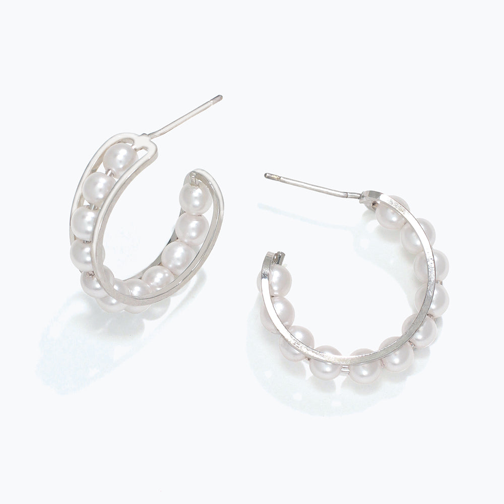 PERIWINKLE SILVER HOOPS PEARLS EARRINGS