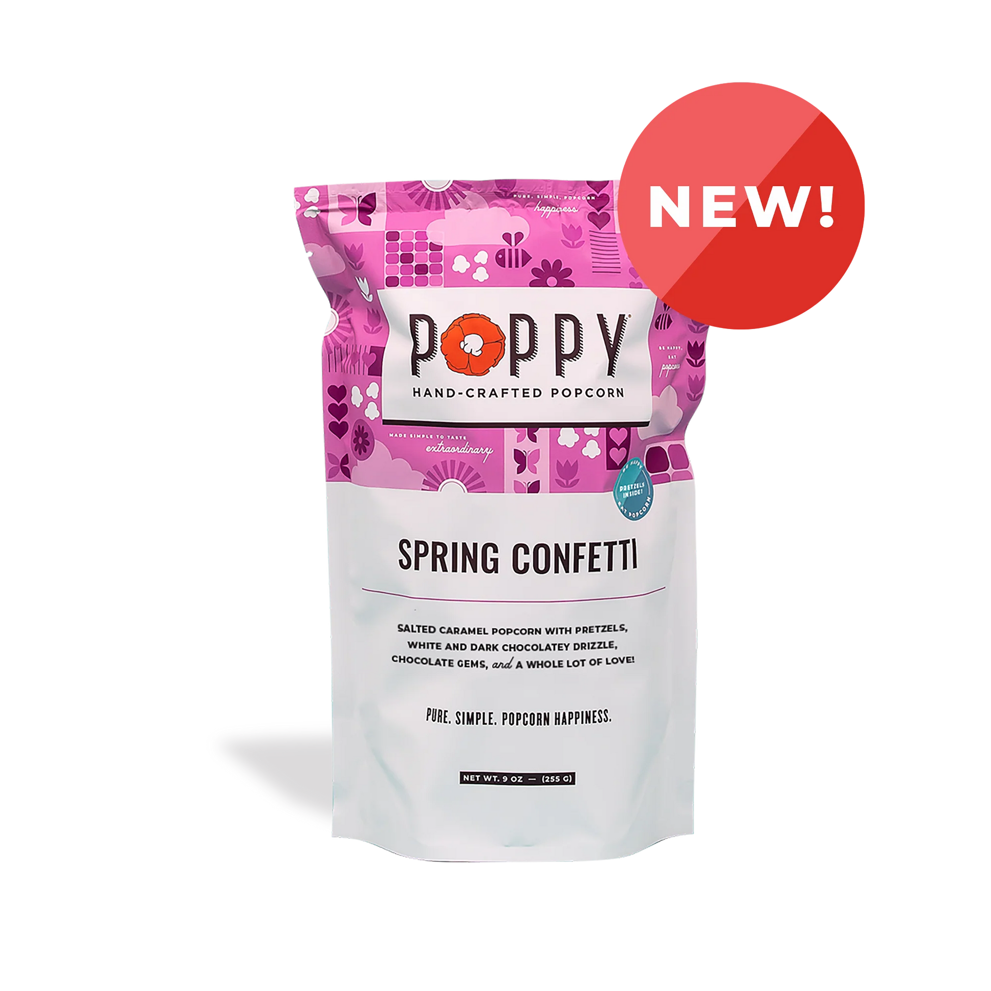 A salty-sweet mix of salted caramel popcorn and crunchy pretzels, drizzled with white and dark chocolatey coating and finished with pastel candy gems. Sweet, crunchy, and cheerful, this limited-edition spring favorite adds a festive pop to any assortment. Sweets without nuts have a 450-day shelf life from the date of production. Wholesale orders will always arrive with at least 337 days of remaining shelf life. CONTAINS: Milk, Wheat, Soy. Manufactured in a facility that also processes: Almond, and Pecan.