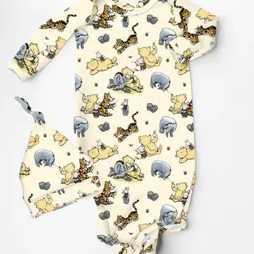VINTAGE POOH-BAMBOO BABY KNOTTED GOWN WITH BEANIE